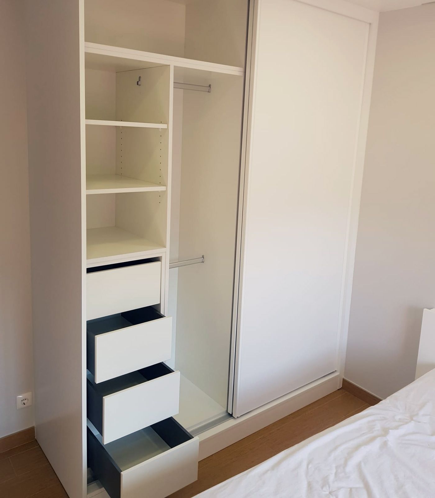 Podemos criar um roupeiro à medida do seu espaço, para assim o otimizar da melhor maneira. Realizamos projetos 3D de acordo com as suas indicações, ou podemos executar o projeto que já tenha delineado.